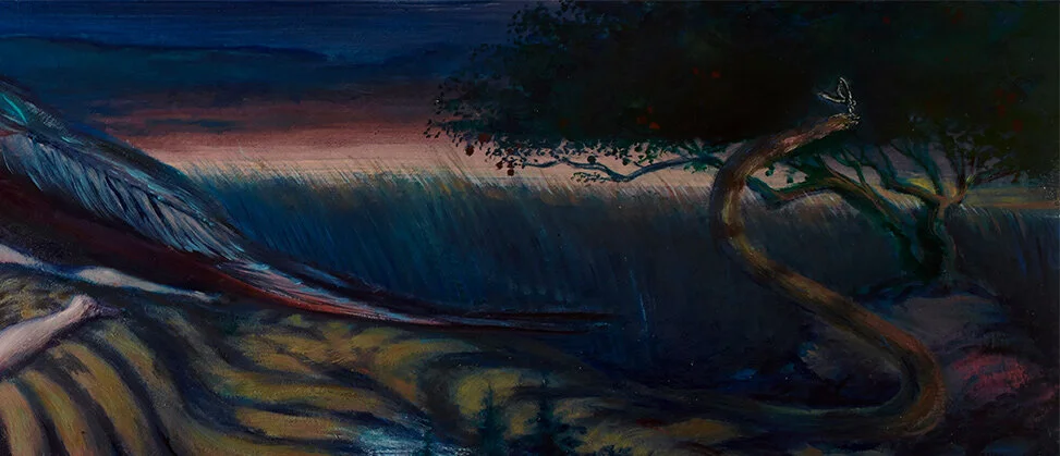 This piece now hangs above the patron’s bed as a talisman for her to find peace and security before sleep. The image contains animals and family memories that transport the patron to a place where her “eden” exists. It gives her narratives of strength, rebirth, wealth and family love to dream about.